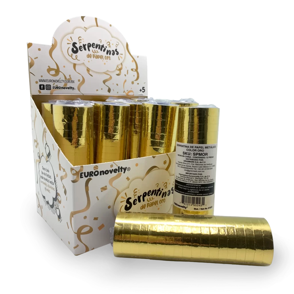 Display Serpentina de Papel Metálico Oro