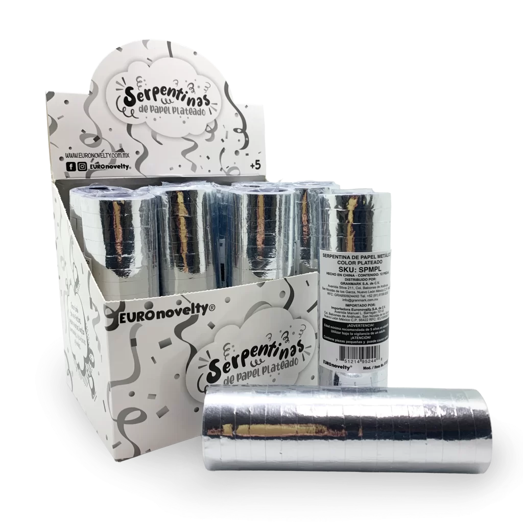 Display Serpentina de Papel Metálico Plata
